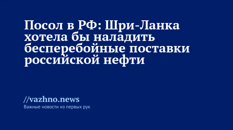 Посол Шри-Ланки в России Шобини Гунасекера 15 декабря сообщила, что страна ведет переговоры с российской стороной с целью гарантировать регулярные поставки нефти из РФ. Речь идет о работе с Москвой, направленной на обеспечение стабильно поступающих энергоносителей для Шри-Ланки.