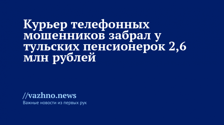 В Тульской области сотрудники полиции установили личность курьера, действовавшего в интересах телефонных мошенников: он похитил у трех пенсионерок свыше 2,6 млн рублей. Молодого человека уже задержали.