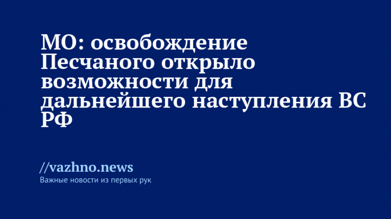 МО: освобождение Песчаного открыло путь к новому наступлению ВС РФ