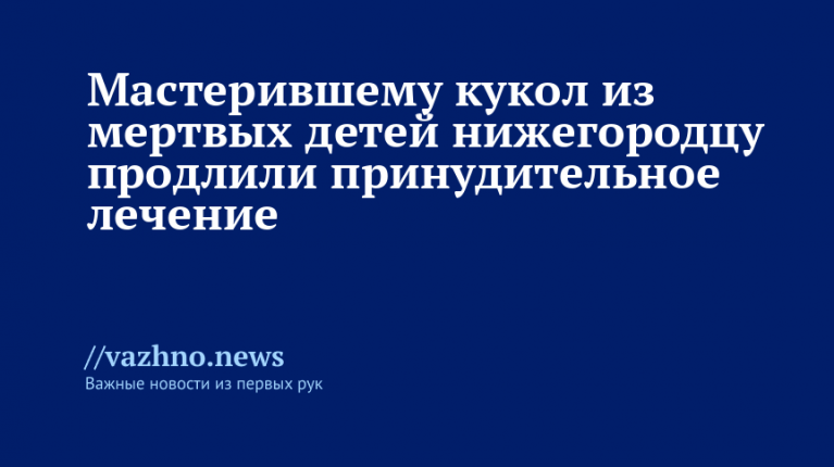 Нижегородскому краеведу Анатолию Москвину, который выкапывал мертвых детей на кладбищах и мастерил кукол из их останков, продлили принудительное лечение в психиатрической больнице. Об этом 15 декабря «Известиям» сообщили в суде.