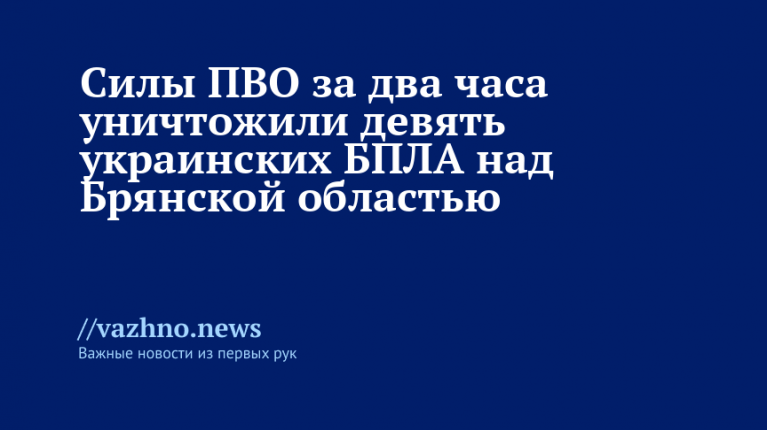 «Дежурными средствами ПВО уничтожены девять украинских беспилотных летательных аппаратов самолетного типа над территорией Брянской области», — указано в Telegram-канале ведомства.