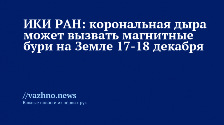 Лаборатория солнечной астрономии Института космических исследований (ИКИ) РАН 15 декабря сообщила, что к 17 и 18 декабря ожидается снижение вспышечной активности на Солнце до нулевого уровня, при этом корональная дыра может стать причиной магнитных бурь.