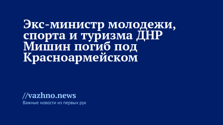 «С глубокой скорбью сообщаю о гибели первого министра молодежи, спорта и туризма Донецкой Народной Республики Михаила Мишина. Михаил Викторович ушел из жизни в боях под Красноармейском, защищая нашу Родину», — написал Ширшов в Telegram-канале.