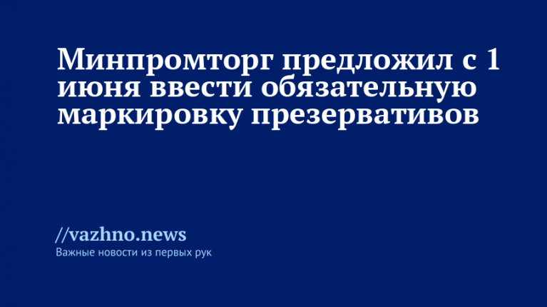 В Минпромторге России внесли предложение об обязательной маркировке презервативов и ряда других медицинских изделий. Сообщение об этом появилось 12 декабря на сайте федерального интернет-портала правовой информации. Кто выступил с инициативой — Минпромторг; что предлагается — ввести обязательную маркировку на указанные товары; когда — информация опубликована 12 декабря; где — на упомянутом портале; почему — инициатива направлена на расширение сферы обязательной маркировки; как — через установление обязательного требования маркировки и дальнейшие регламенты.