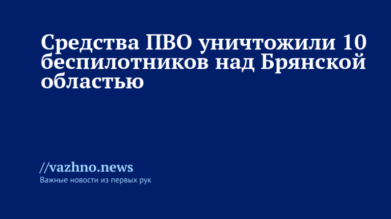 Средства противовоздушной обороны зафиксировали и уничтожили десять беспилотных летательных аппаратов над территорией Брянской области. Информацию об этом в понедельник, 15 декабря, опубликовало Министерство обороны России.
