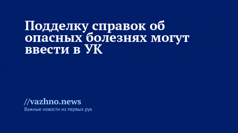В Уголовном кодексе России планируется ввести отдельную статью, предусматривающую ответственность за изготовление и оборот справок об отсутствии заболеваний, опасных для окружающих. Авторами инициативы выступили депутаты Ирина Яровая и Олег Морозова; правительство дало проекту положительную оценку (отзыв имеется у «Известий»).