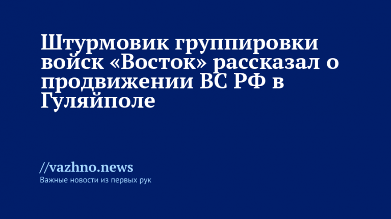 Подразделения группировки войск «Восток» проводят активные штурмовые операции в Запорожской области, в районе Гуляйполя; продвижение осуществляется за счет подавления огневых точек противника. Об этом в Министерстве обороны РФ сообщили во вторник, 16 декабря.
