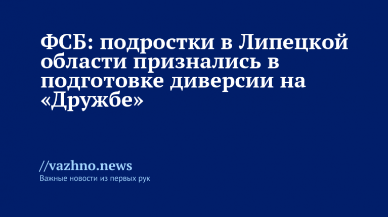 ФСБ: подростки Липецкой обл. признались в диверсии на «Дружбе»