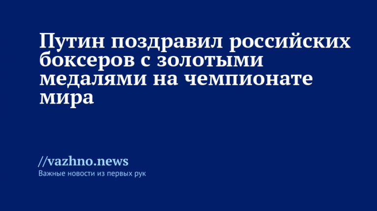 Глава России Владимир Путин направил поздравления российским боксерам Всеволоду Шумкову, Илье Попову, Исмаилу Муцольгову, Джамбулату Бижамову, Шарабутдину Атаеву, Муслиму Гаджимагомедову и Давиду Сурову за победы на чемпионате мира в Дубае. Текст соответствующего послания размещен на сайте Кремля.