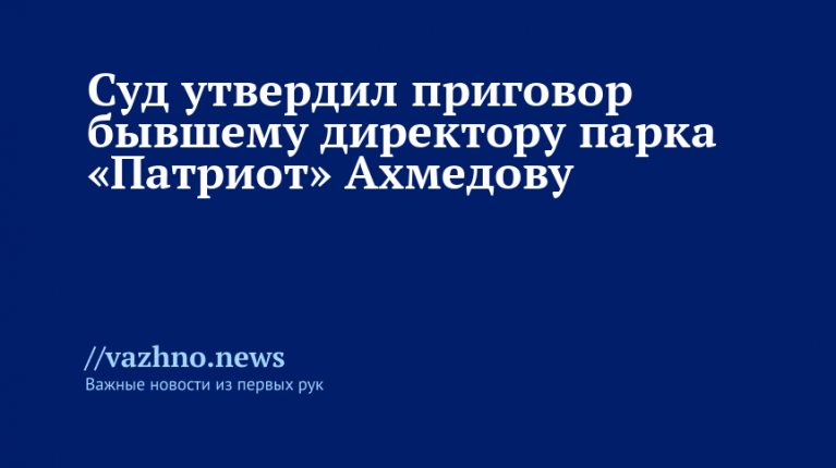 Московский областной суд отверг апелляцию на приговор в отношении бывшего директора парка «Патриот» Вячеслава Ахмедова по делу о мошенничестве в особо крупном размере и служебном подлоге. Об этом 16 декабря проинформировал корреспондент «Известий».
