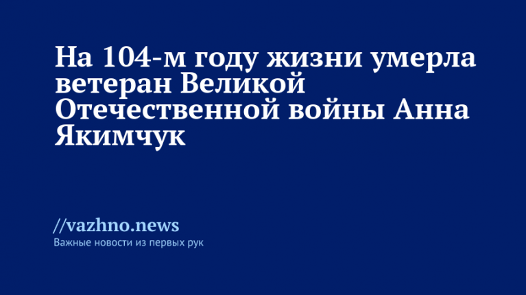 «В Ульяновске на 104-м году жизни умерла ветеран Великой Отечественной войны и Почетный гражданин (Ульяновска) Анна Якимчук. Администрация Ульяновска и глава города Александр Болдакин выражают глубокие соболезнования родным и близким Анны Прокопьевны», — говорится в Telegram-канале администрации.