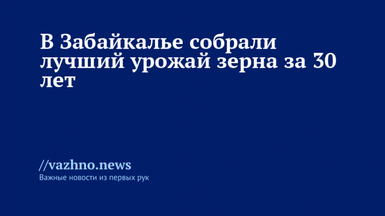 Рекордный сбор зерновых в Забайкалье был получен в 2025 году. Аграрии продемонстрировали лучшие показатели за последние 30 лет, говорится на официальном интернет-портале края во вторник, 16 декабря.