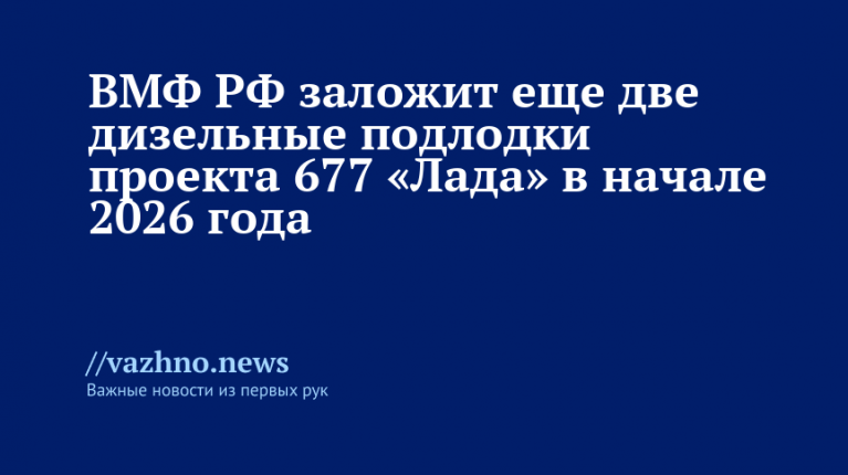 Российский Военно-морской флот (ВМФ) намерен в начале 2026 года заложить еще две дизельно-электрические подводные лодки проекта 677 «Лада». Об этом 16 декабря сообщил главнокомандующий ВМФ Александр Моисеев после завершения церемонии поднятия флага на подлодке «Великие Луки» на «Адмиралтейских верфях» в Санкт-Петербурге.