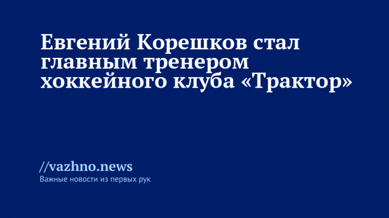 ХК «Трактор» сообщил о назначении Евгения Корешкова на пост главного тренера клуба Континентальной хоккейной лиги (КХЛ). Информация была опубликована 16 декабря в официальном Telegram-канале команды.