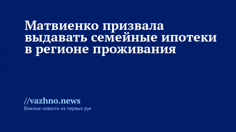 16 декабря председатель Совета Федерации Валентина Матвиенко предложила приоритетно выдавать льготную семейную ипотеку именно в том регионе, где фактически проживает семья, чтобы не стимулировать отток населения в столичные агломерации.
