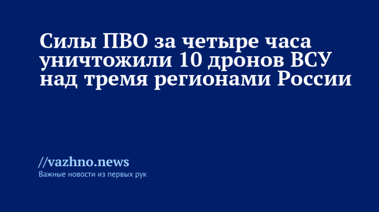 В отчете ведомства детализировано, где именно произошли пуски и уничтожения: три дрона ликвидированы над Тверской областью, шесть — над Брянской областью и один аппарат сбит над территорией Орловской области. Действия ПВО были направлены на перехват и нейтрализацию беспилотных летательных аппаратов, совершавших вылеты в зону российского воздушного пространства.
