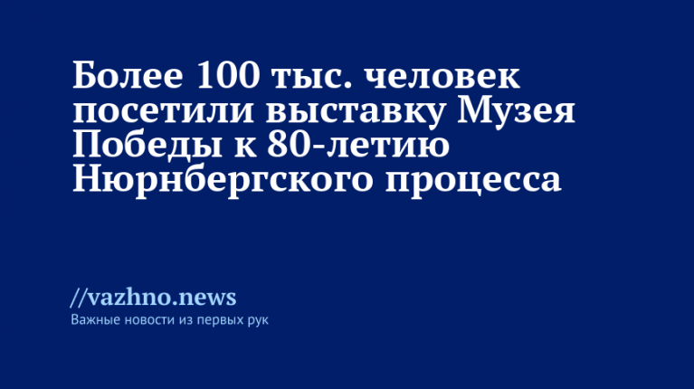 Более 100 тыс. человек побывали на выставке «Нюрнберг. Неизвестное об известном», организованной в Музее Победы. Проект стартовал 18 ноября — в преддверии 80-летия «Суда народов» — и оставался открытым для публики в течение месяца.