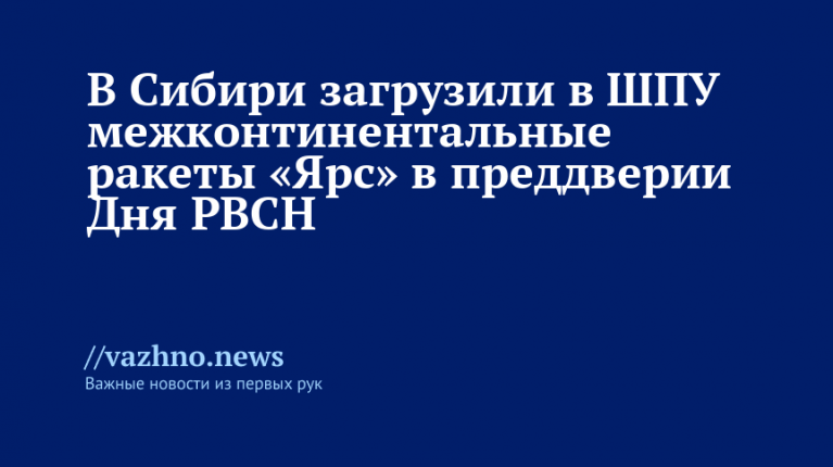 Загрузки межконтинентальных баллистических ракет подвижного грунтового ракетного комплекса (ПГРК) «Ярс» в шахтные пусковые установки (ШПУ) провели в преддверии Дня Ракетных войск стратегического назначения (РВСН) РФ. Об этом 17 декабря сообщили в Министерстве обороны РФ.