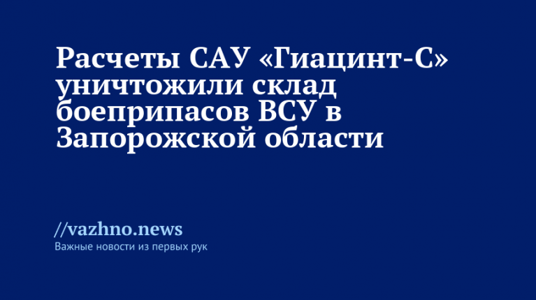 САУ «Гиацинт‑С» уничтожили склад боеприпасов ВСУ в Запорожье
