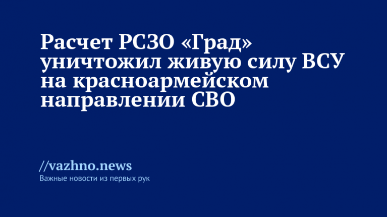 Расчет реактивной системы залпового огня (РСЗО) «Град» из состава 110-й отдельной гвардейской мотострелковой бригады 51-й гвардейской общевойсковой армии группировки войск «Центр» уничтожил скопления личного состава формирований Вооруженных сил Украины (ВСУ), что сорвало ротацию вражеских подразделений в районе населенного пункта Гришино на красноармейском направлении проведения специальной военной операции (СВО).
