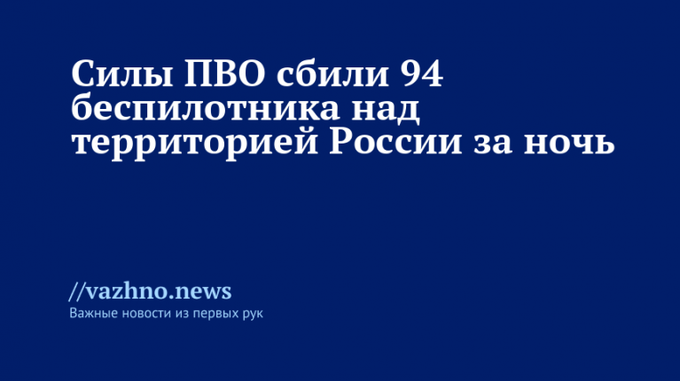 «В течение прошедшей ночи дежурными средствами ПВО перехвачены и уничтожены 94 украинских беспилотных летательных аппарата самолетного типа», — говорится в сообщении в Telegram-канале.