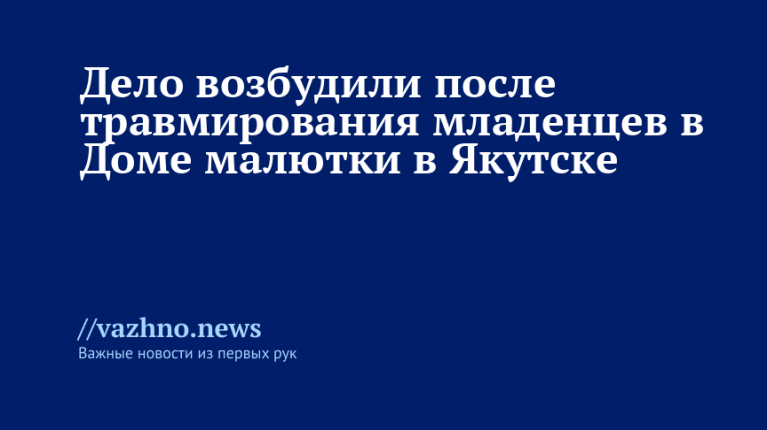 Прокуратура Якутии инициировала проверку в Республиканском центре содействия семейному воспитанию (Дом малютки) после сообщений о том, что там пострадали трое младенцев. По итогам проверки принято решение возбудить уголовное дело по статье, предусматривающей ответственность за халатность, повлекшую причинение тяжкого вреда здоровью.