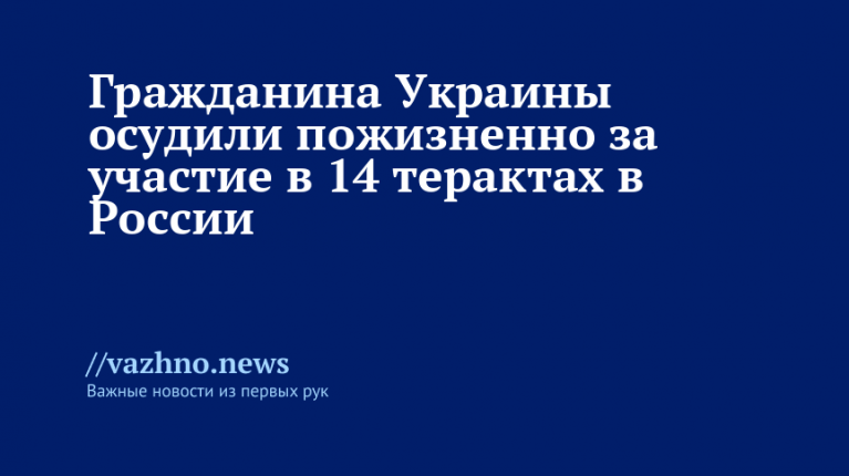 Украинца приговорили к пожизненному за участие в 14 терактах в РФ