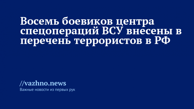 Восемь боевиков центра спецопераций Вооруженных сил Украины (ВСУ), которые были осуждены заочно и получили пожизненные сроки, внесены в российский перечень террористов и экстремистов. Это решение отражено на сайте Росфинмониторинга, где и опубликована соответствующая информация. Таким образом, в официальном каталоге РФ появились данные о данных лицах.