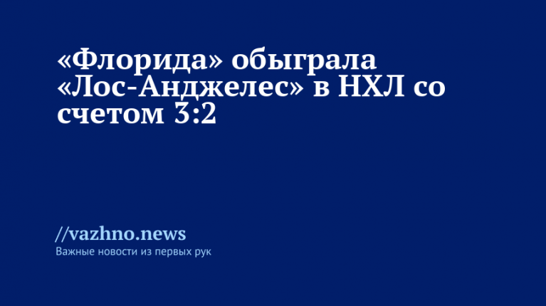 Хоккейный клуб (ХК) «Флорида» одержал победу над «Лос-Анджелесом» в домашнем поединке чемпионата Национальной хоккейной лиги (НХЛ). Матч прошел 18 декабря и завершился с итоговым счетом 3:2.