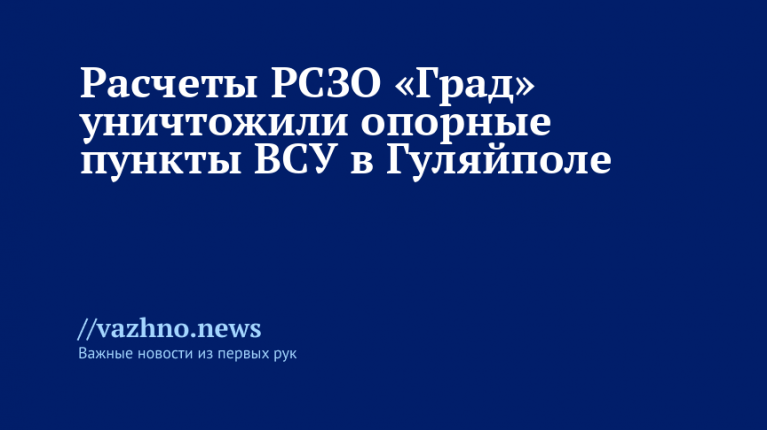 Расчеты реактивных систем залпового огня (РСЗО) «Град» 35-й армии группировки войск «Восток», как заявил Минобороны РФ 18 декабря, разрушили опорные пункты Вооруженных сил Украины (ВСУ) в городе Гуляйполе.