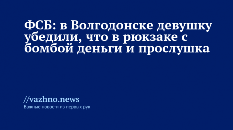 В Волгодонске сотрудники Федеральной службы безопасности (ФСБ) задержали россиянку, которая собиралась передать чиновнику городской администрации рюкзак со взрывным устройством. Сообщение об этом 18 декабря распространил Центр общественных связей (ЦОС) ФСБ России.