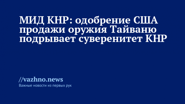 «США открыто объявили о масштабном плане по продаже Тайваню передовых вооружений, [это] серьезно подрывает суверенитет, безопасность и территориальную целостность Китая», — приводит его слова «РИА Новости».