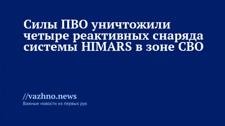 «Средствами противовоздушной обороны сбиты четыре реактивных снаряда системы залпового огня HIMARS производства США», — указано в сообщении ведомства.
