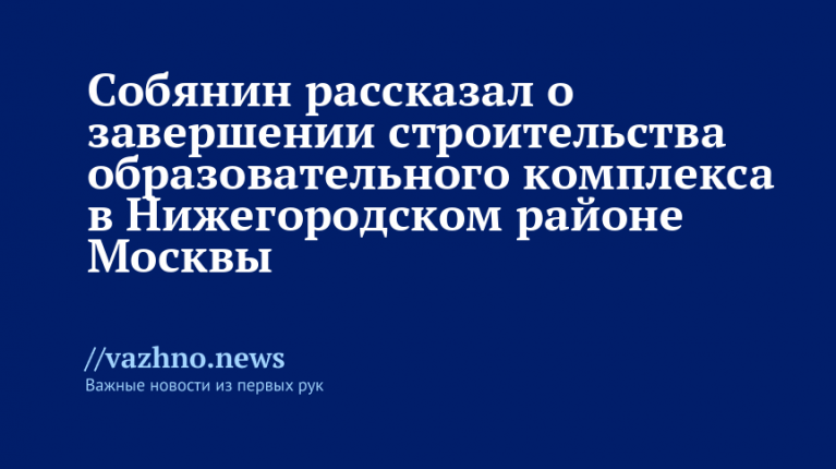 В Нижегородском районе Москвы завершено строительство образовательного комплекса на 400 мест. Объект возведен на Перовском шоссе и в одном здании совмещает начальную школу и детский сад. Об этом в своем канале в МАХ сообщил мэр столицы Сергей Собянин.