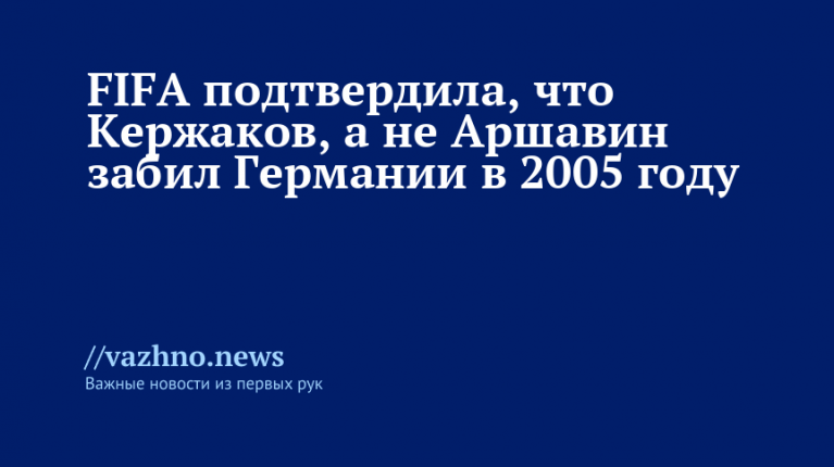 Международная федерация футбола (FIFA) подтвердила, что автором гола в товарищеском матче сборной России с Германией в 2005 году был не Андрей Аршавин, а бывший нападающий ФК «Зенит» Александр Кержаков. Об этом 20 декабря сообщил журналист Иван Карпов, тем самым уточнив, кто именно забил решающий мяч в том поединке.
