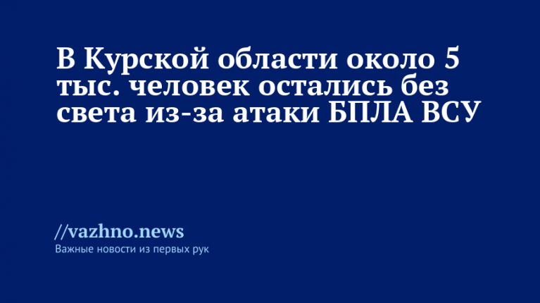 Глава региона Александр Хинштейн 20 декабря сообщил, что примерно 5 тыс. жителей Курской области остались без электроснабжения после удара украинского беспилотного летательного аппарата (БПЛА) по объекту энергетической инфраструктуры. По его словам, инцидент произошел в Курском районе и оказался следствием атаки беспилотника на энергообъект.