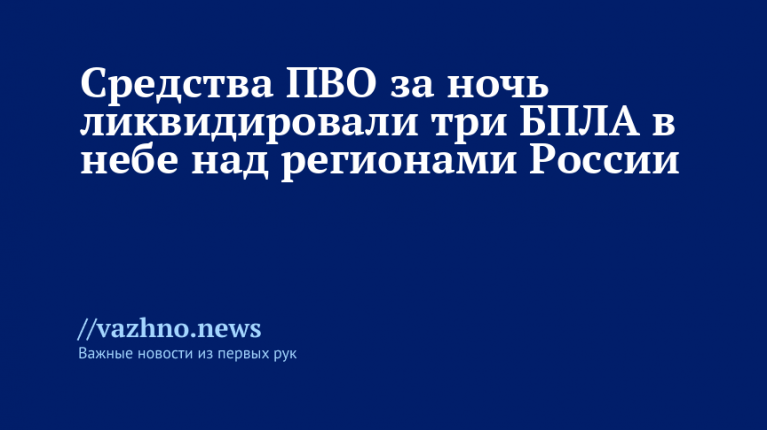 ПВО за ночь уничтожили три украинских беспилотника над Россией