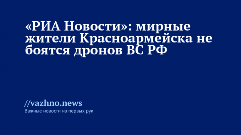 РИА: мирные жители Красноармейска не боятся дронов ВС РФ