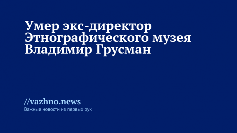 В Санкт-Петербурге умер историк и философ Владимир Грусман, который возглавлял Российский этнографический музей в период с 1999 по 2019 год. Сообщение об этом появилось 21 декабря в Telegram-канале пресс-службы губернатора города Александра Беглова.