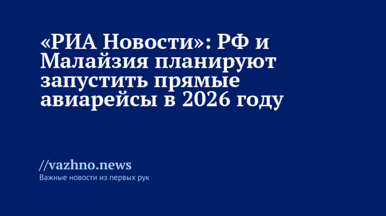 РФ и Малайзия планируют прямые рейсы в 2026 году