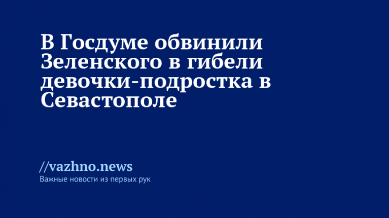 В Госдуме обвинили Зеленского в гибели девочки в Севастополе