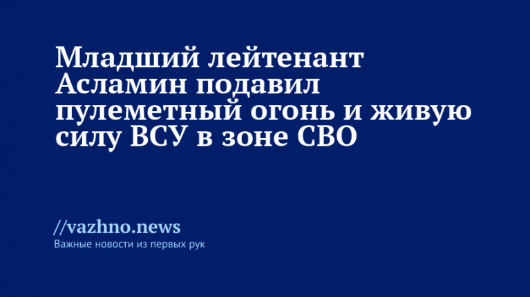 Мл. лейтенант Асламин подавил пулемётный огонь и силы ВСУ в зоне СВО