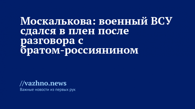 Москалькова пояснила, что семья пленного, которая жила в Краматорске, переехала в Россию еще до начала СВО, а сам он остался, чтобы ухаживать за тяжело больной бабушкой. По ее словам, сама ситуация имела место в 2023 году: старший брат, находившийся против воли в рядах ВСУ, и младший, служащий в Вооруженных силах РФ, оказались в соседних населенных пунктах Запорожской области. Мужчины вышли на связь и поговорили. Россиянин во время разговора предложил старшему брату сдаться, порекомендовав выйти на частоту «Волга», через которую украинские военные могут заявить о желании сложить оружие.