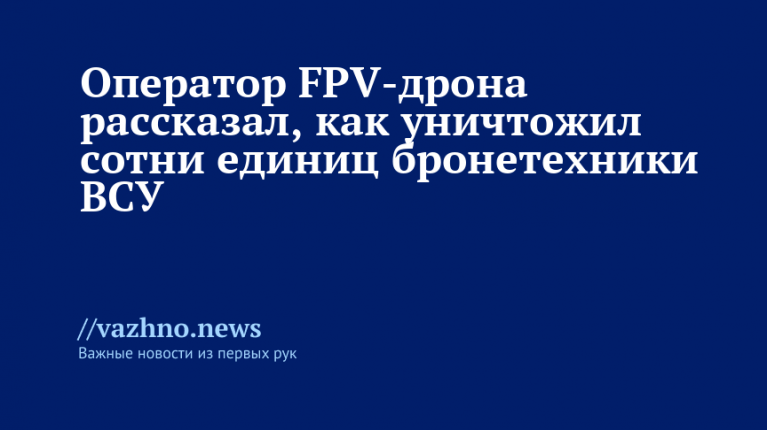 Оператор FPV-дрона рассказал о сотнях уничтоженных бронемашин ВСУ