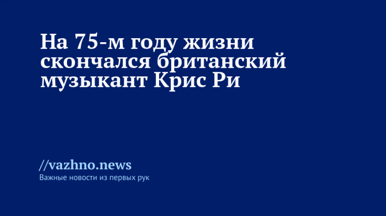 Вечером 22 декабря стало известно о кончине Криса Ри. Этот знаковый певец оставил заметный след в британской музыкальной культуре. Он запомнился своими жанровыми экспериментами, не боясь сочетать поп-музыку с блюзом, софт-роком и соулом, что придавало его композициям особое звучание. По характеру он был примерным семьянином и страстным поклонником автогонок, прожив насыщенную и заметную жизнь. «Известия» вспоминают самые интересные моменты из биографию артиста.