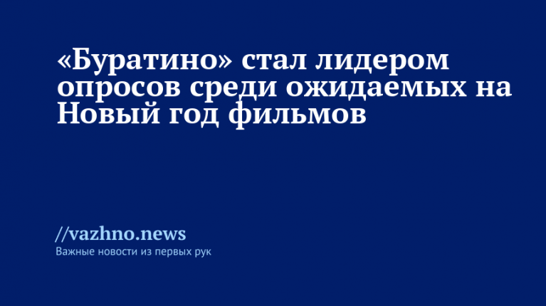 Новая киносказка «Буратино» возглавила опросы о фильмах, которых зрители больше всего ждут на Новый год. Об этом 23 декабря сообщил профессиональный журнал «Бюллетень кинопрокатчика», ссылаясь на результаты еженедельного трекинга «Кинозритель», проводимого Фондом кино и Wanta Group.