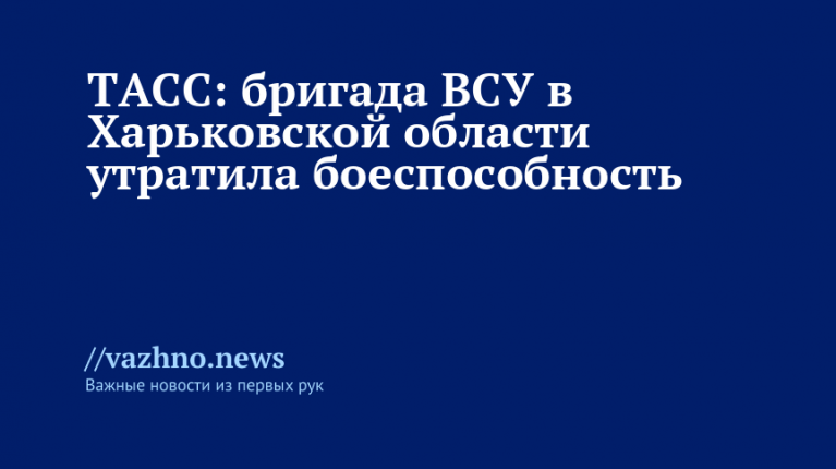 ТАСС: бригада ВСУ в Харьковской обл. утратила боеспособность
