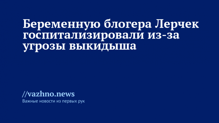 Беременную блогерку Валерию Чекалину, более известную под псевдонимом Лерчек, госпитализировали из-за угрозы выкидыша. Об этом в своей записи в соцсети Instagram сообщил её возлюбленный Луис Сквиччиарини (принадлежит корпорации Meta, которая признана экстремистской и запрещена в РФ).