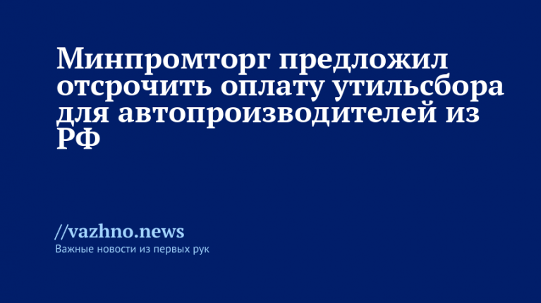 «Минпромторгом России подготовлен проект постановления, который предполагает отсрочку оплаты утилизационного сбора для крупнейших отечественных производителей автотехники и прицепов», — указано в сообщении.