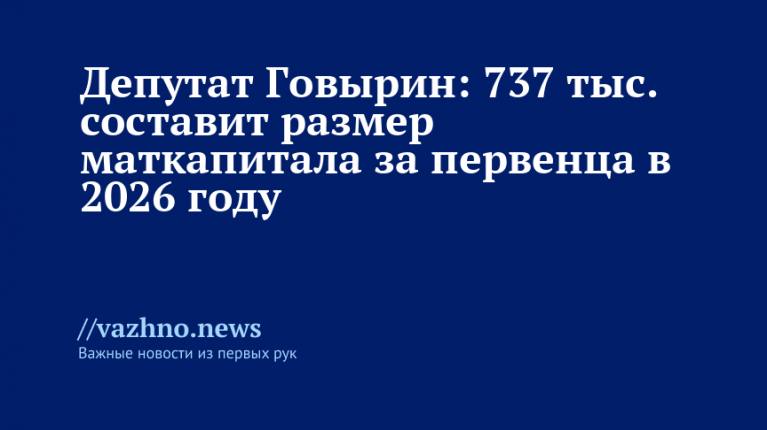 С февраля 2026 года размер материнского капитала для первого ребенка превысит 737 тыс. рублей. Об этом 27 декабря сообщил депутат Госдумы Алексей Говырин из партии «Единая Россия». Он назвал конкретные суммы выплат и указал, с какого периода начнут действовать новые размеры. Когда именно изменения вступят в силу, депутат уточнил датой 1 февраля; где и в каком формате была озвучена эта информация — в заявлении депутата, опубликованном в источниках. Почему проводится корректировка сумм в сообщении не раскрывается, как будет реализовано повышение — путем увеличения размера материнского капитала, о чем сообщил парламентарий.